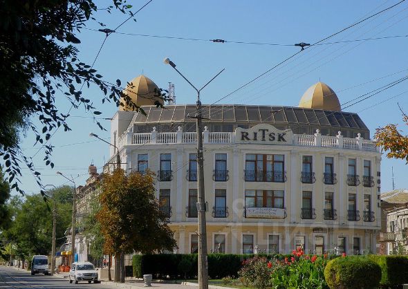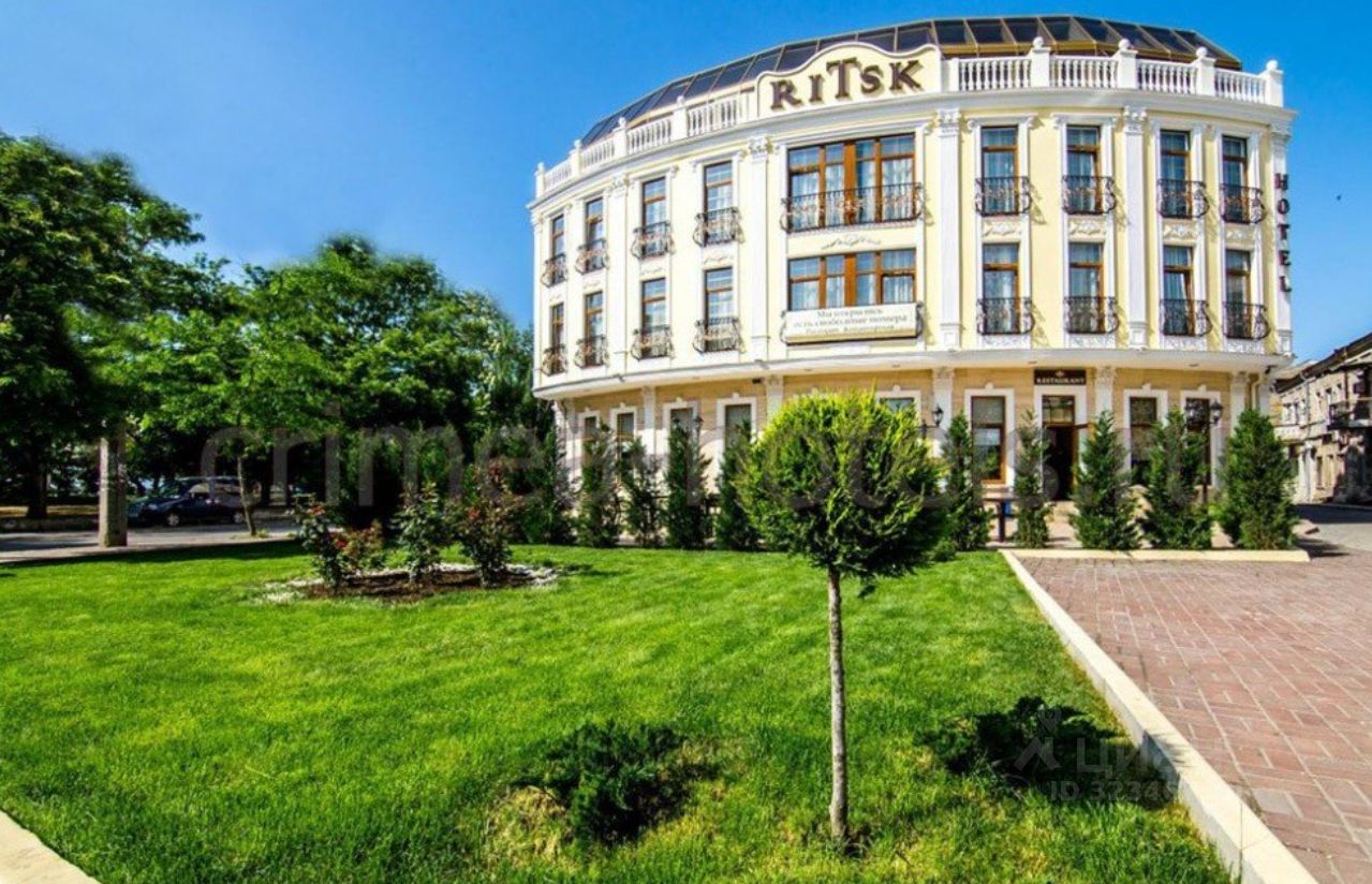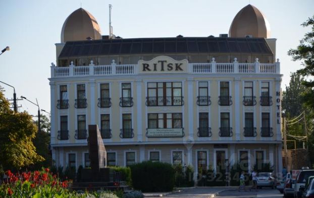 Действующий Отель ''Ritsk'', расположен в центре города Евпатория, на центральной набережной. В шаговой доступности от него находятся все основные городские и курортные достопримечательности. Выгодное местоположение делает ''Ritsk'' удобным для бизнес-отдыха и туристов. Подойдет так же под частную клинику и другие виды коммерческой деятельности. 4-этажное здание отеля имеет прекрасный внешний вид и внутренний дизайн. В нём 23 номера, укомплектованы необходимой мебелью, независимо от категории. Каждый номер располагает санузлом с душем или ванной, электронным замком и имеет всё необходимое бытовое оборудование: кондиционер, ТВ и Wi-Fi, телефон, холодильник, сейф. Оборудованный современной техникой бизнес-центр позволяет проводить различные деловые мероприятия. В отеле питание предоставляется в кафе, также имеется летний ресторанчик. Шикарная прогулочная набережная. Городской песчаный пляж, в 800 м от отеля оборудован кабинками для переодевания, душевыми, навесами, лежаками. Работает прокатная служба.