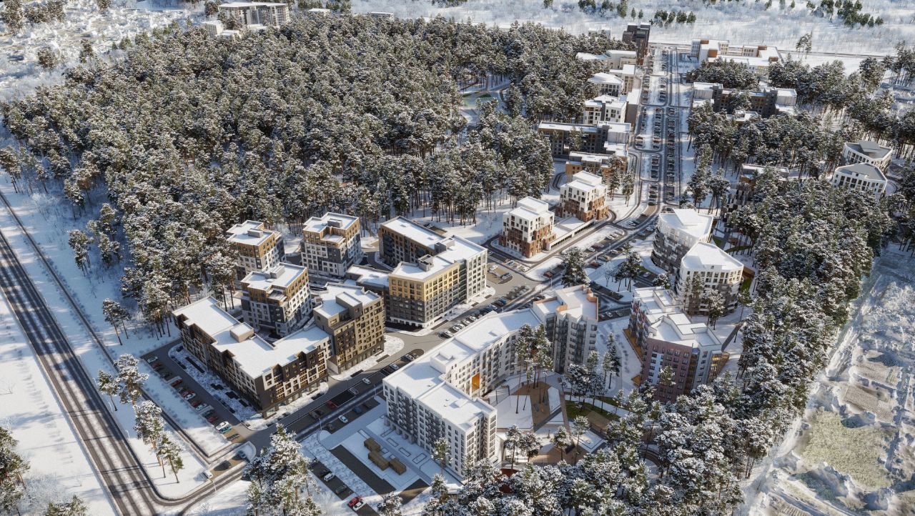 Живой квартал у леса Лес - главный герой квартала. Дома находятся в окружении соснового бора, а их этажность - до 8 этажей - не превышает крон сосен. В новом жилом комплексе большое внимание уделено заботе о сохранении деревьев и реализации специальных программ по высадке новых, чтобы жители наслаждались прекрасной растительностью каждый день.