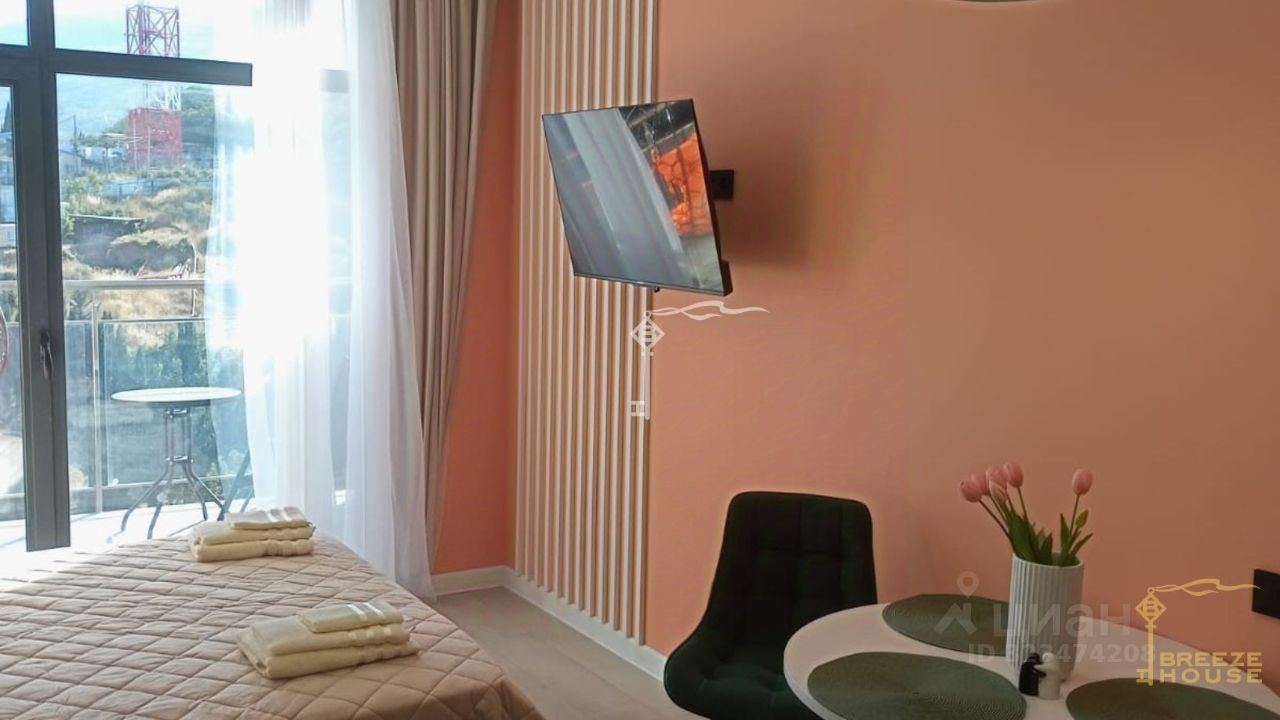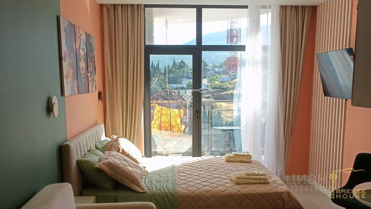 Продажа стильной студии 30.8 м² с просторной террасой с видом на море, расположенных в новом комплексе Алушты Крымская Резиденция, в 500 метрах от моря.