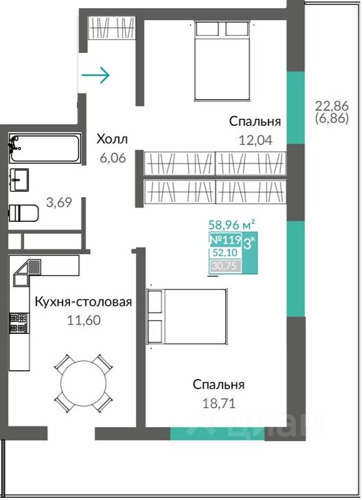 Продаётся 2-комнатная квартира в строящемся доме (Корпус 1), срок сдачи: I-кв. 2026, общей площадью 58.96 кв.м., на 15 этаже. Новый жилой комплекс ''Шалфей'' от застройщика ''Монолит'' расположен по адресу: Россия, Республика Крым, Симферополь, проспект Александра Суворова
