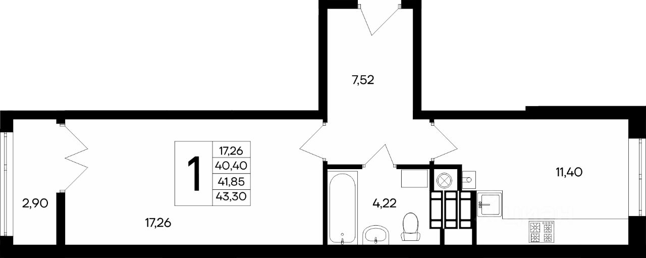 Общая площадь43,73 м2