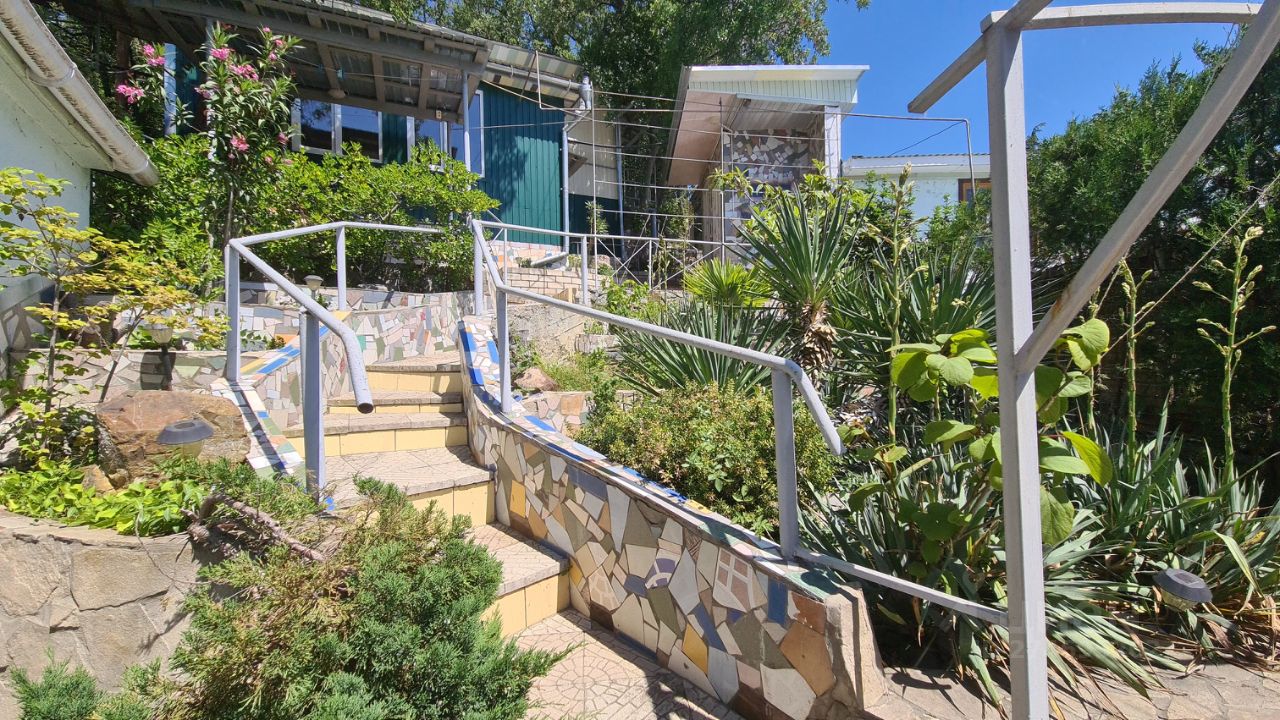 4/я площадка: - стоянка на 3и и более авто. - беседки,в окружении крымской растительности и с видом на море, в каждой из которых есть мангал и вся необходимая садовая мебель. - номерной фонд - кухня.