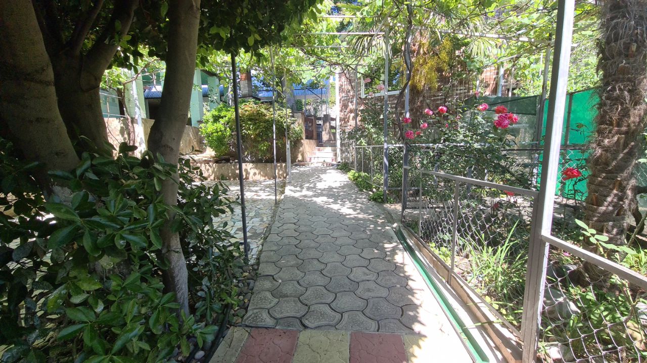1/ая- площадка представляет собой: парадный вход, въездные ворота на одно парковочное место для автомобиля в окружении многочисленных клумб, пальм, олеандров и др. зеленых насаждений.