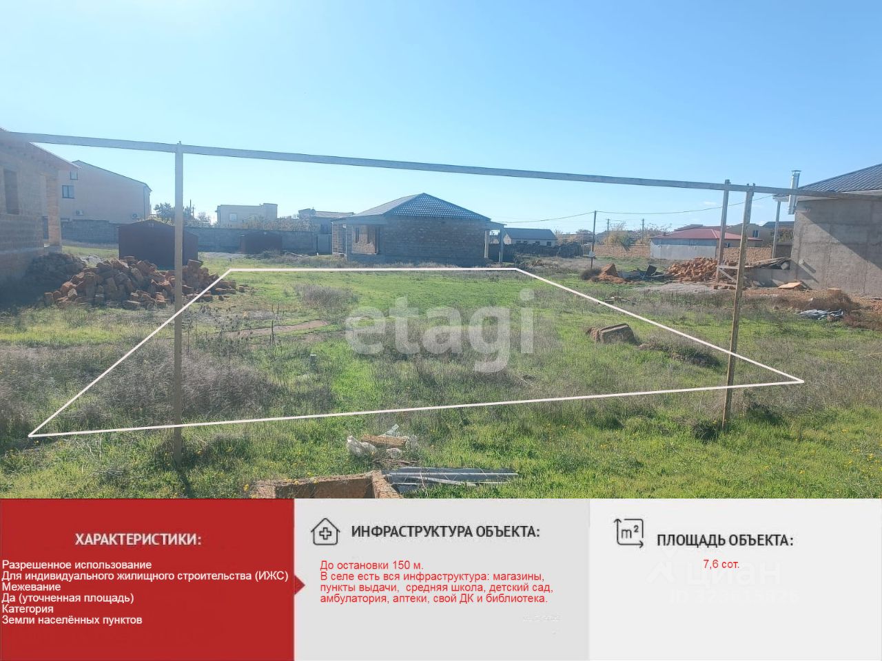 Продам участок ИЖС в селе Суворовское Сакского района, общей площадью 7,5 соток.