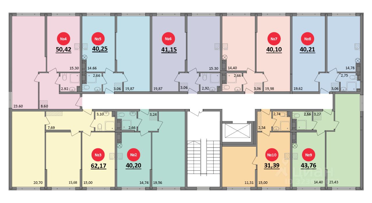 На этаже можно выбрать несколько однокомнатных квартир площадью до 50,42 метров, по проекту заведено в квартиру холодная вода, электричество, газ, установлен индивидуальный двухконтурный газовый котел для горячей воды и отопления!