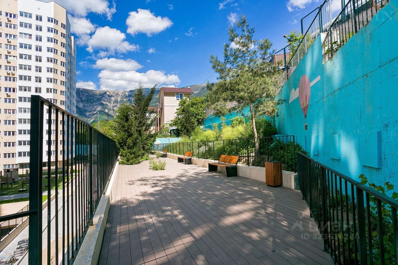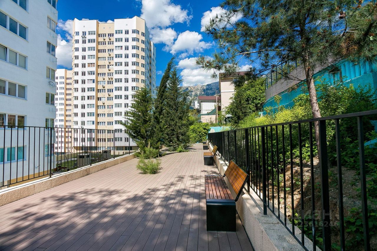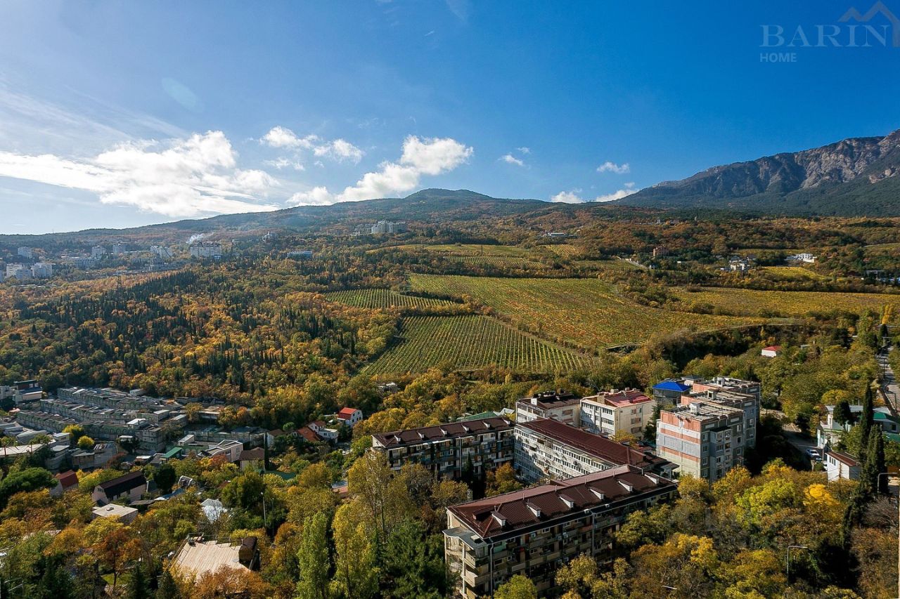 Квартира расположена на 11-м этаже, за счёт этого не слышно шума города, что позволяет спать в тишине с открытыми окнами. Из квартиры открывается роскошный вид на виноградники и горы. За счёт того, что оконные проёмы увеличенной площади можно наслаждаться видами не поднимая головы с подушки. Квартира удачно зонирована. Выделена спальная зона у окна, уходя немного вглубь квартиры расположена выделенная гостиная, за которой кухня-гостиная, далее совмещённый санузел и отдельная гардеробная комната. В квартире выполнен дизайнерский дорогой ремонт. Декоративная штукатурка на стенах, дорогой керамогранит, брендовая сантехника и архитектурная подсветка выделяют квартиру и позволяют проживая в ней наслаждаться не только видами из окна, а ещё и роскошным современным ремонтом. В 30 метрах от главного въезда в Жилой комплекс - автобусная остановка. В 5 минатах ходьбы - большой супермаркет и торгово-развлекательный центр Конфети. В 15 минутах ходьбы - один из самых роскошных променадов Ялты - Боткинская тропа, по которой можно подняться за 25-30 минут до горного водопада.