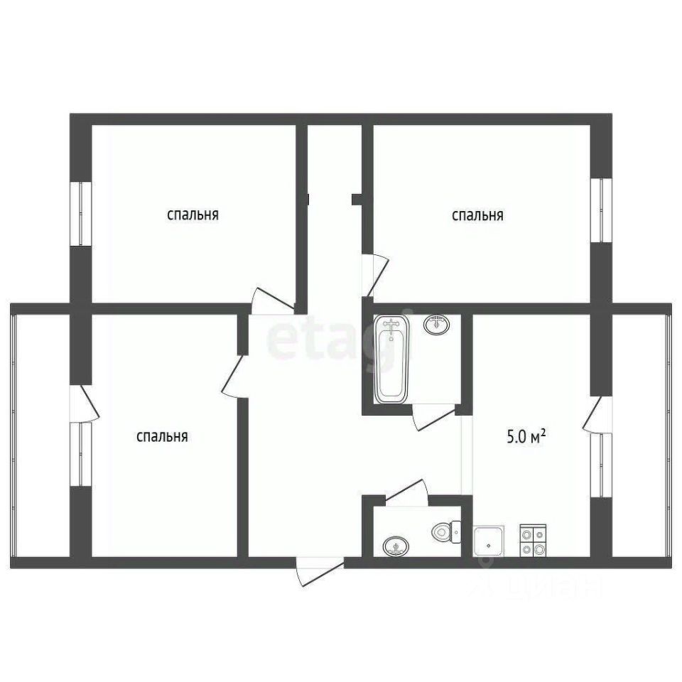 Трехкомнатная квартира расположена на 5 этаже площадью 66,2 квадратных метра.