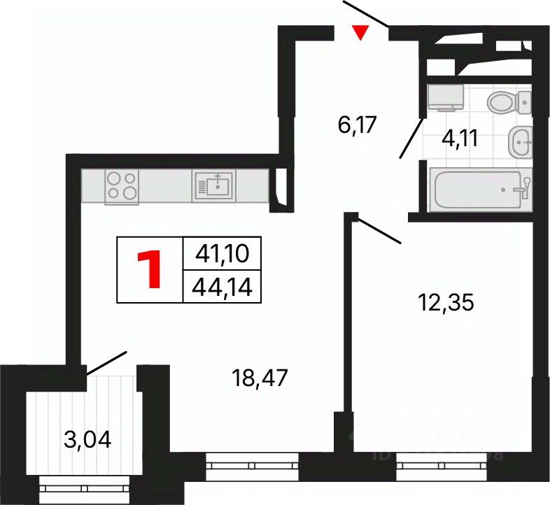 Однокомнатная квартира с предчистовой отделкой в ЖК ''Алиса'' на 16 этаже. Общая площадь: 44.39 кв.м., жилая: 12.35 кв.м., площадь просторной кухни-столовой: 18.65 кв.м. Все окна выходят на одну сторону. В квартире одна лоджия, один совмещенный санузел. Высота потолков 2.72 м.