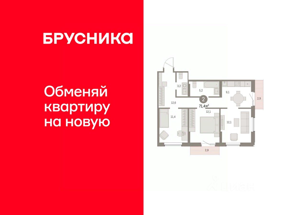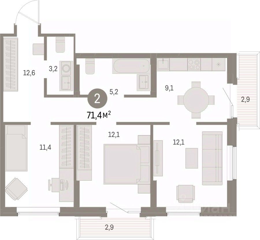 Общая площадь71,37 м2
