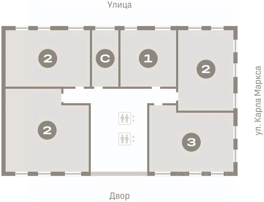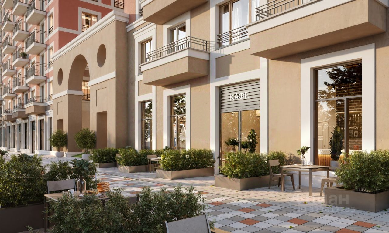 Квартира с кухней-гостиной и двумя спальнями в Доме кино. Особенности планировки: балкон, вид во двор, второй санузел, предчистовая отделка, разнесённые спальни. Район