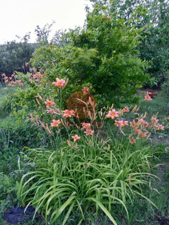 Участок озеленён, есть фруктовые деревья: инжир, яблоня, персики, а так-же кустарники и цветы.