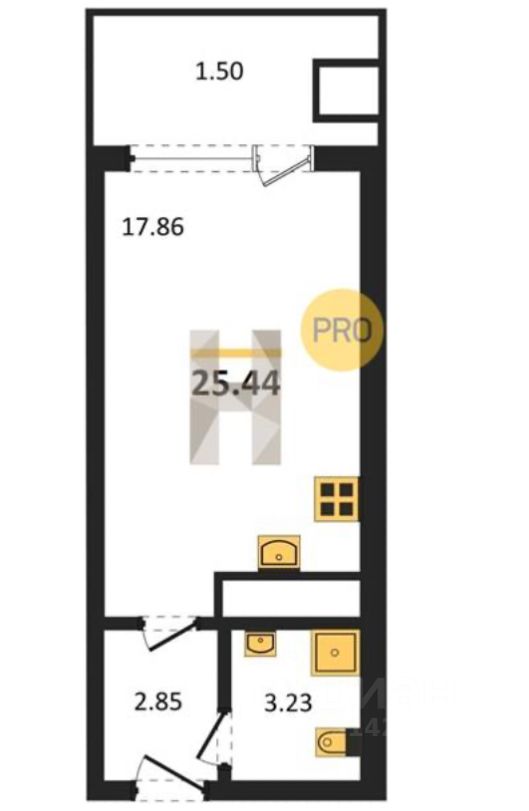 Технические характеристики: Этаж/этажность: 4/17 Количество комнат: 1 Общая площадь: 25.44 м2 Площадь комнаты: 17.86 м2 Высота потолков: 2.7м Санузел: совмещенный Водоснабжение: центральное Электричество: подключено Канализация: центральное Отопление: центральное