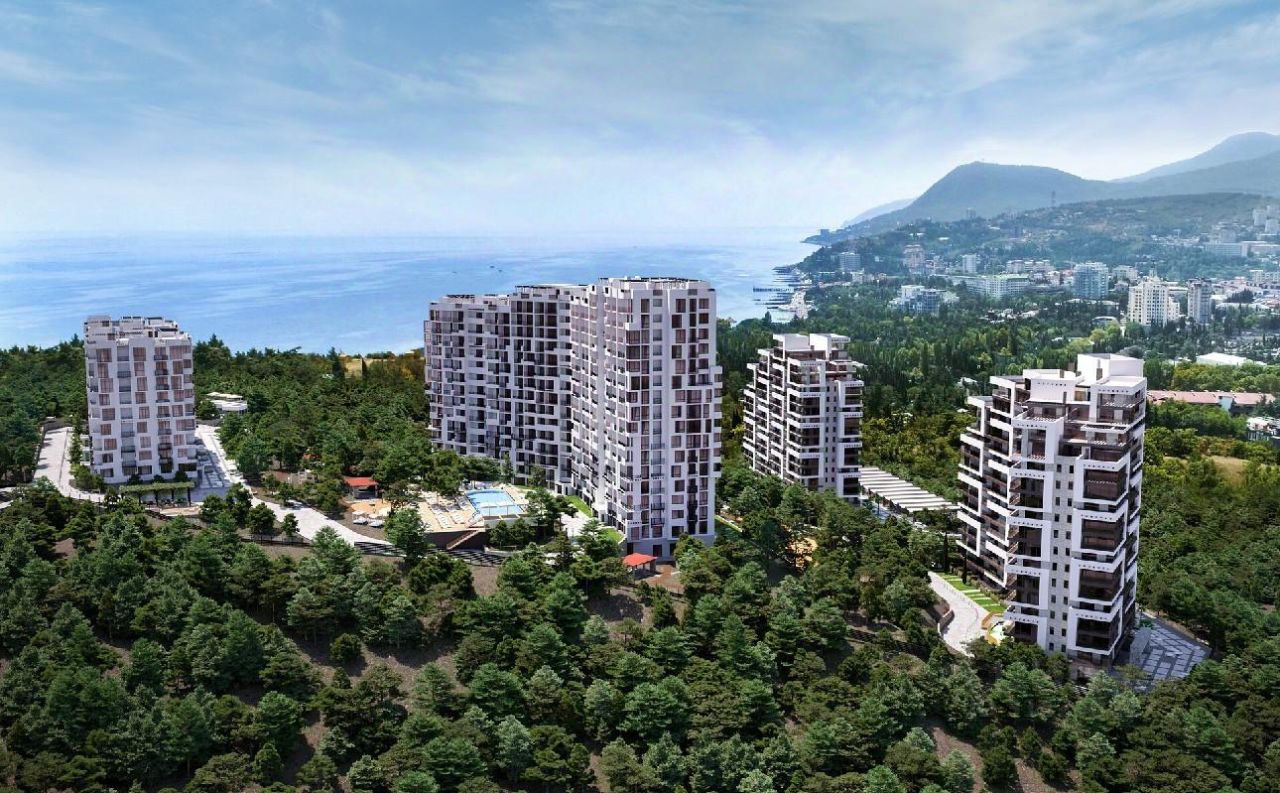Комплекс окружен крымскими соснами и горами, расположился в уединенном уголке города Алушта на Южном берегу Крыма.