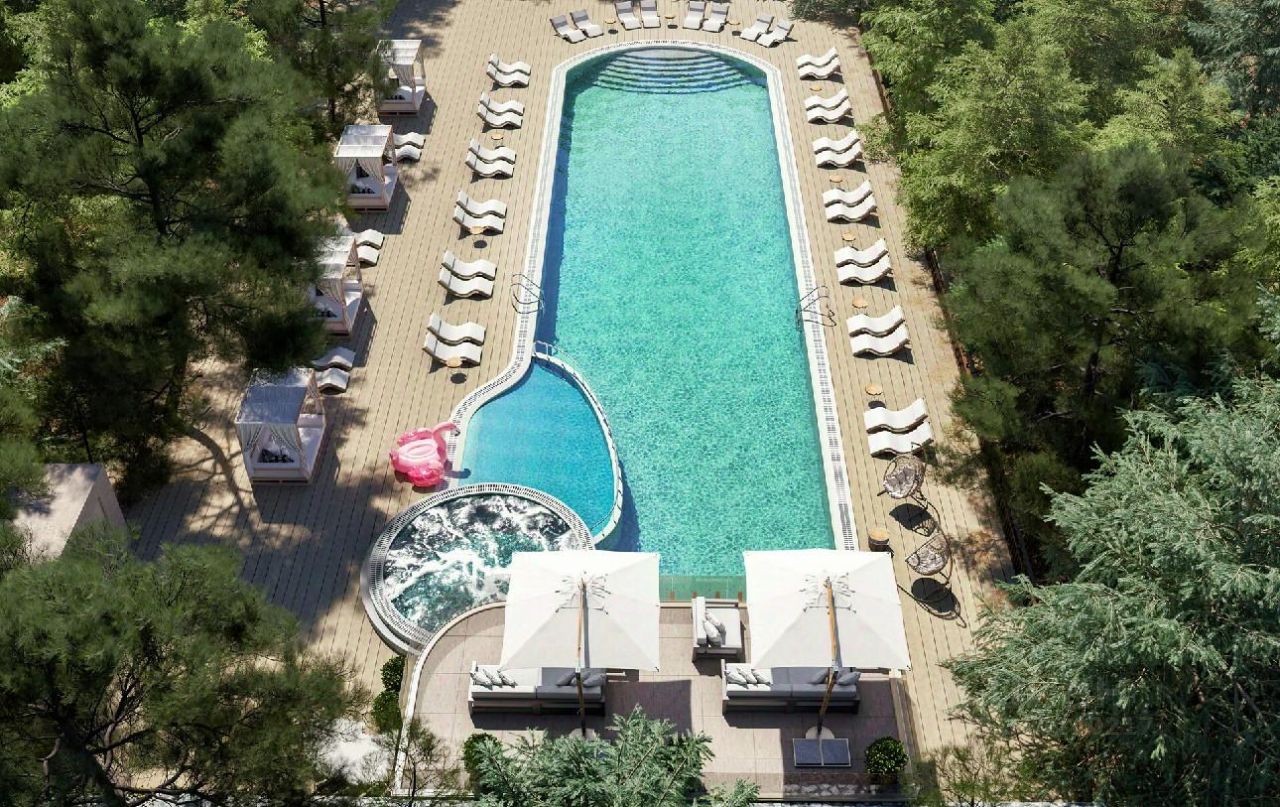 Инфраструктура и благоустройство: многоуровневые зоны отдыха, спортзал, зоны барбекю, открытый бассейн, гидромассажный спа-бассейн, крытый бассейн, банный комплекса: русская баня, банный чан, каминная комната, индивидуальные программы парения, зона отдыха на улице, зоны фитеотерапии, детская зона, игровые комплексы, веревочный парк, крытая детская аква зона, тренажерный зал, фитнес-центр, йога-центр, горы и море, хвойный парк, тропа здоровья,оздоровительный сектор, ресторанный сектор, смотровая площадка.