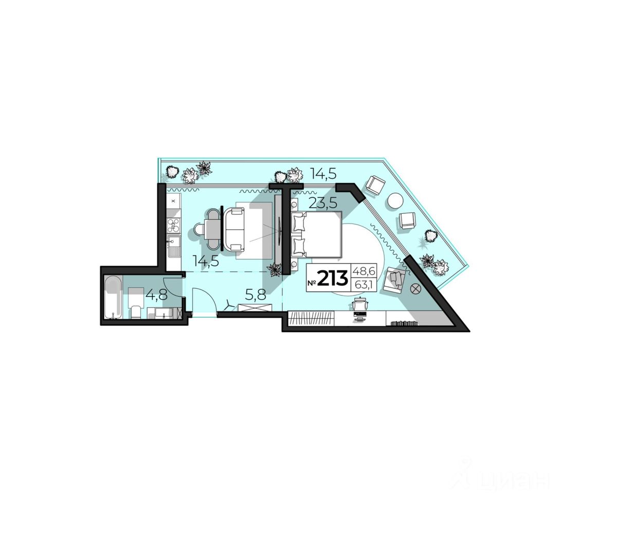 Общая площадь63,1 м2