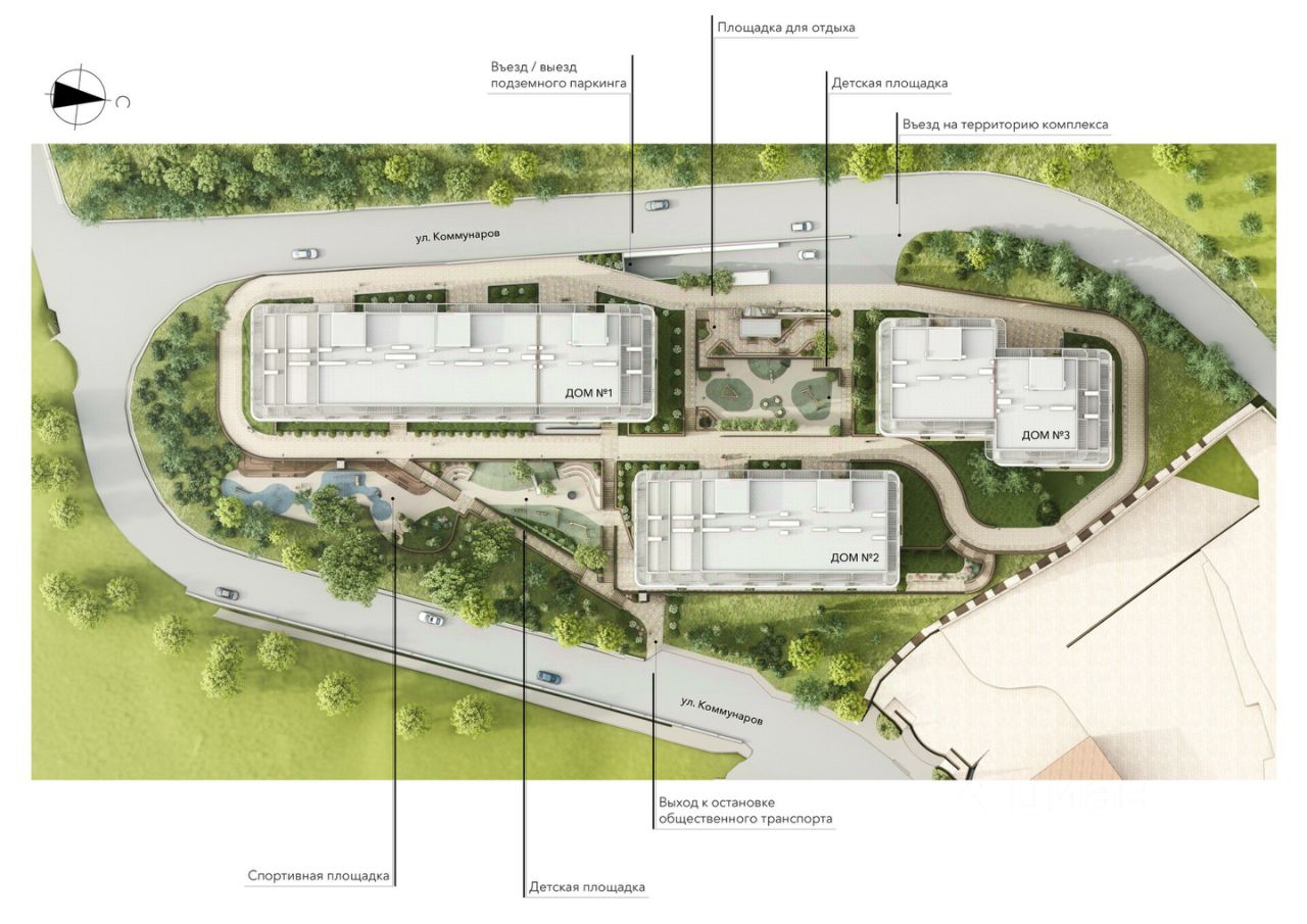 Жилой комплекс находится на улице Коммунаров — в элитном микрорайоне Приморского парка: недалеко от дома вы найдете все необходимое для жизни и отдыха.