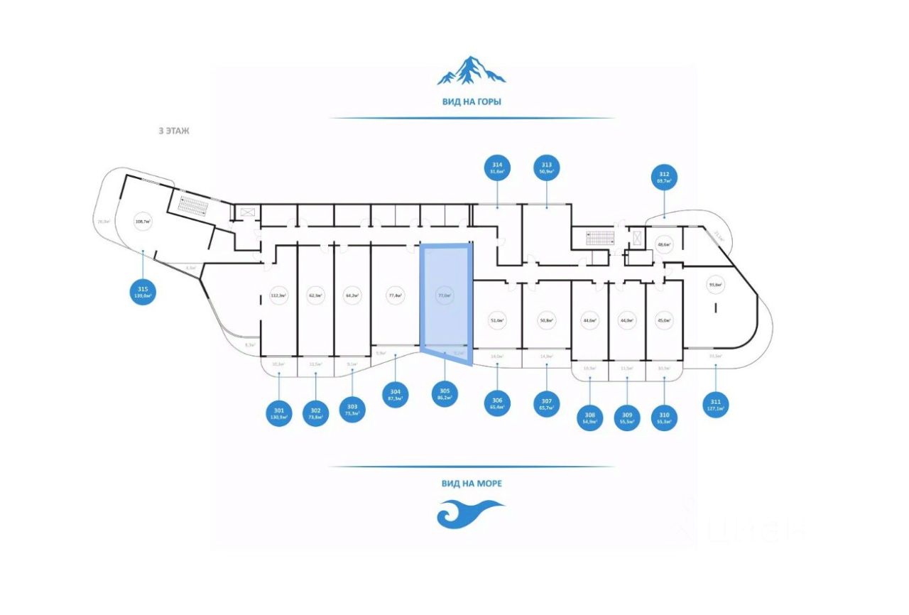 Панорамное остекление и открытые широкие балконы-террасы с прозрачными стеклянными ограждениями дарят потрясающие виды на море и окружающие пейзажи.