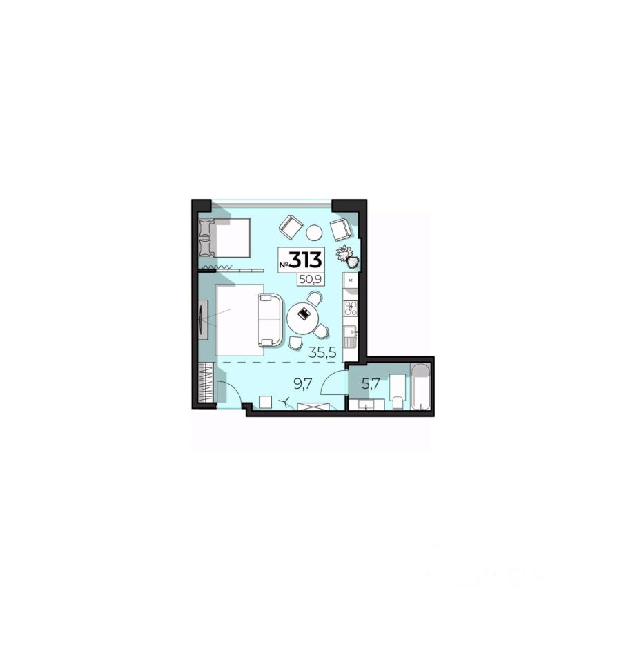 Общая площадь50,9 м2