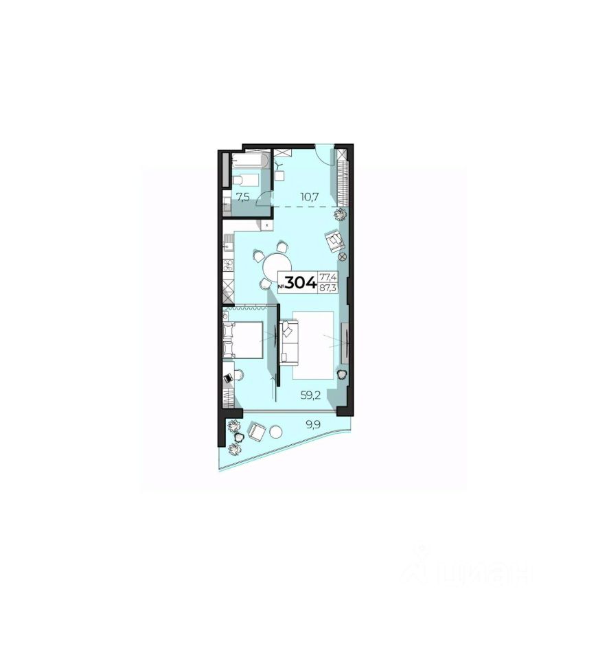 Общая площадь87,3 м2