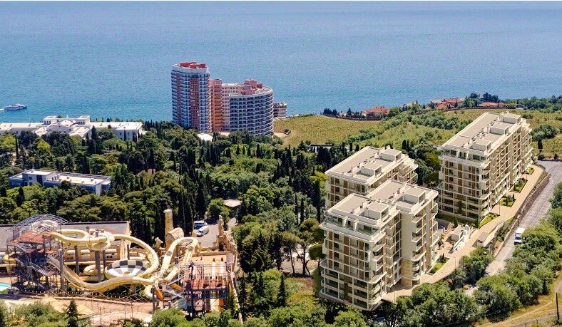 Рядом находится собственный аквапарк ''Атлантида'', остановка общественного транспорта и оборудованный городской пляж. В шаговой доступности — школы, детские сады, магазины, рестораны и достопримечательности Южного берега Крыма.
