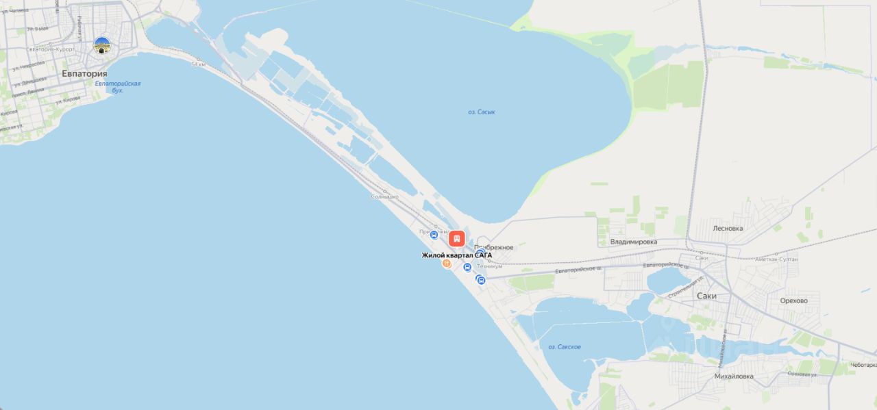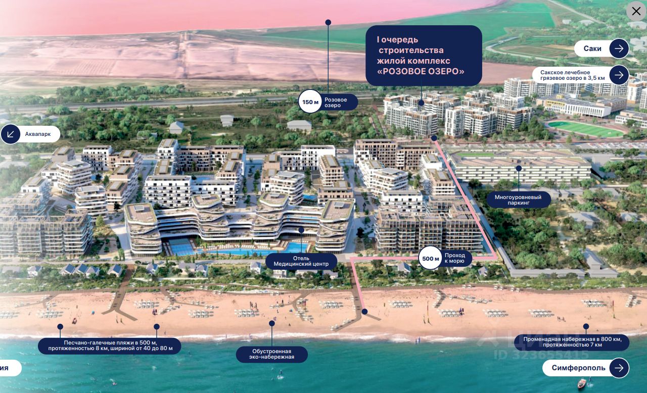 О ПРОЕКТЕ Курортный комплекс ''Прибрежный'' расположен на Западном побережье Крыма у кромки Каламитского залива между курортными городами Евпатория и Саки. Экологически чистое место бальнеологического курорта находится на косе между Чёрным морем и розовым озером Сасык-Сиваш в непосредственной близости к Сакским лечебным грязевым лиманам.