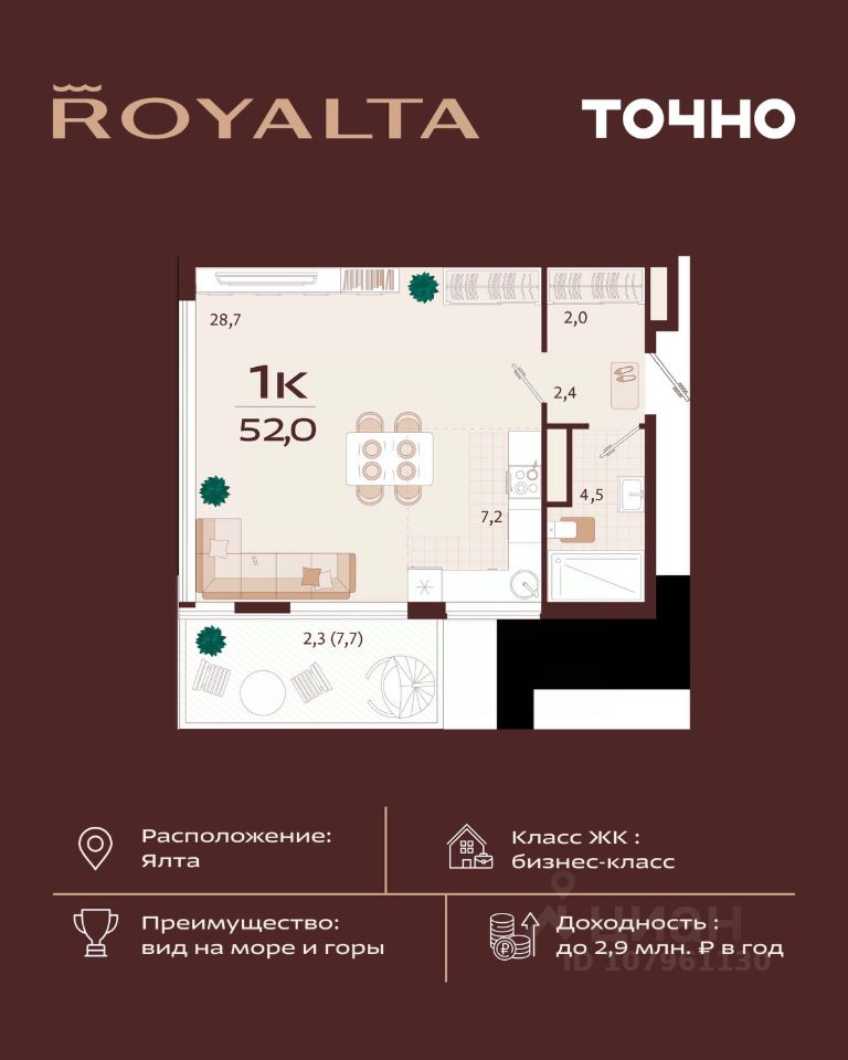 продам 1-к, имени Спендиарова, 537 887 000 ₽