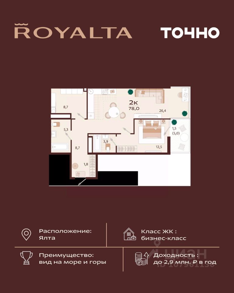 продам 2-к, имени Спендиарова, 537 590 000 ₽