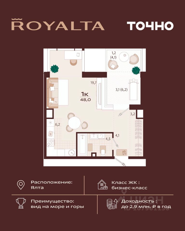 Жилой комплекс ''РОЯЛТА'' включает 5 монолитно-кирпичных девятиэтажных зданий. Проект предлагает квартиры различных планировок: от однокомнатных до трехкомнатных с расширенными балконами и террасами до 13,4 м2. Территория будет благоустроена детскими игровыми и спортивными площадками, гостевой автостоянкой и озеленением, включая газоны, деревья и кустарники. Также появятся современные уличные тренажёры, СПА-комплекс и панорамный инфинити-бассейн. В шаговой доступности находятся центральная набережная Ялты, детские сады, школы, супермаркеты, торговые центры, Ялтинский медицинский колледж, автовокзал и Мордвиновский парк.