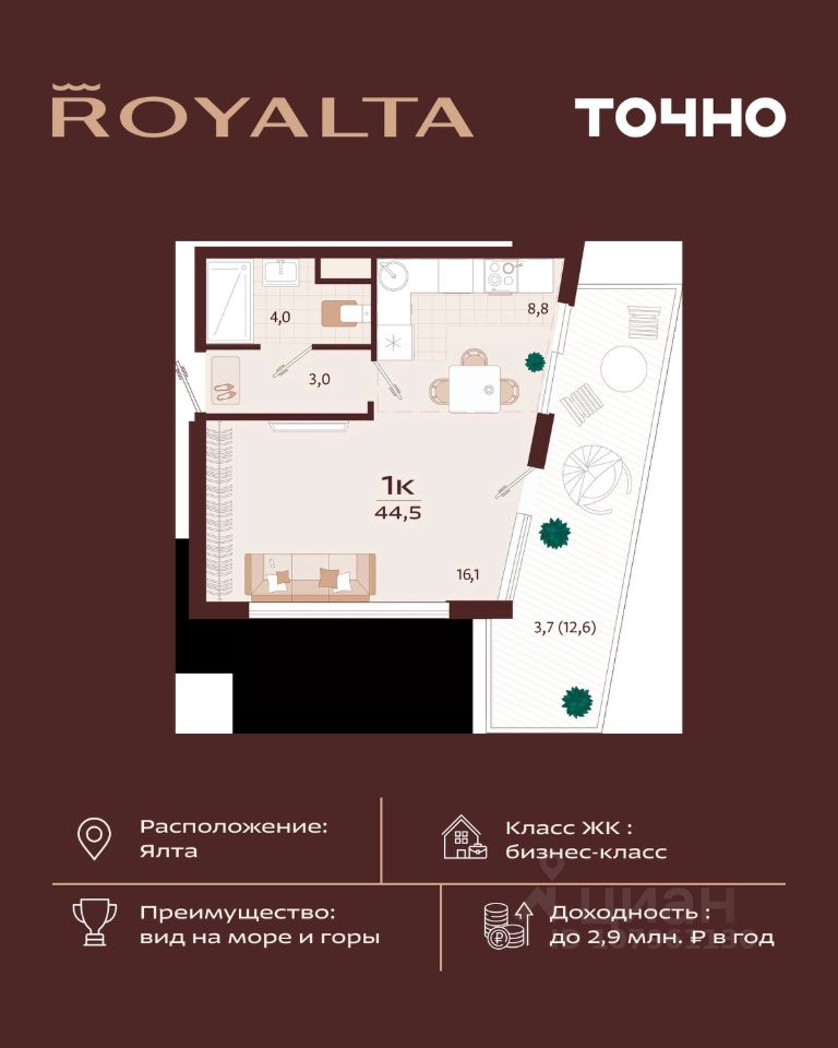 продам 1-к, имени Спендиарова, 534 710 000 ₽