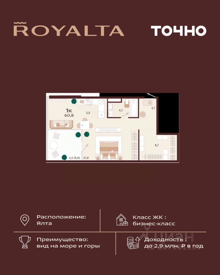 продам 1-к, имени Спендиарова, 530 400 000 ₽