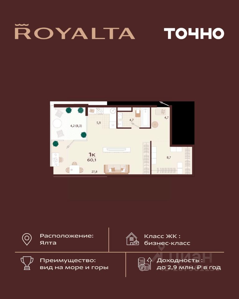 продам 1-к, имени Спендиарова, 531 149 000 ₽