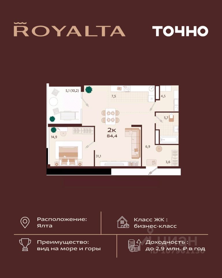 продам 2-к, имени Спендиарова, 540 934 000 ₽