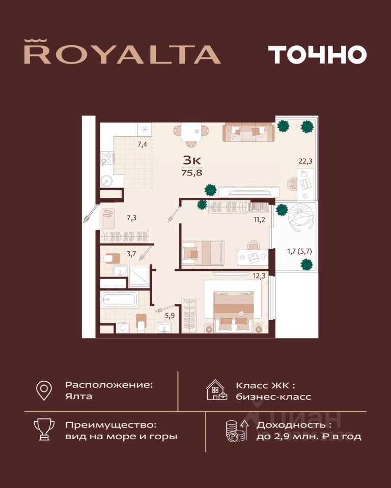 продам 3-к, имени Спендиарова, 540 174 000 ₽