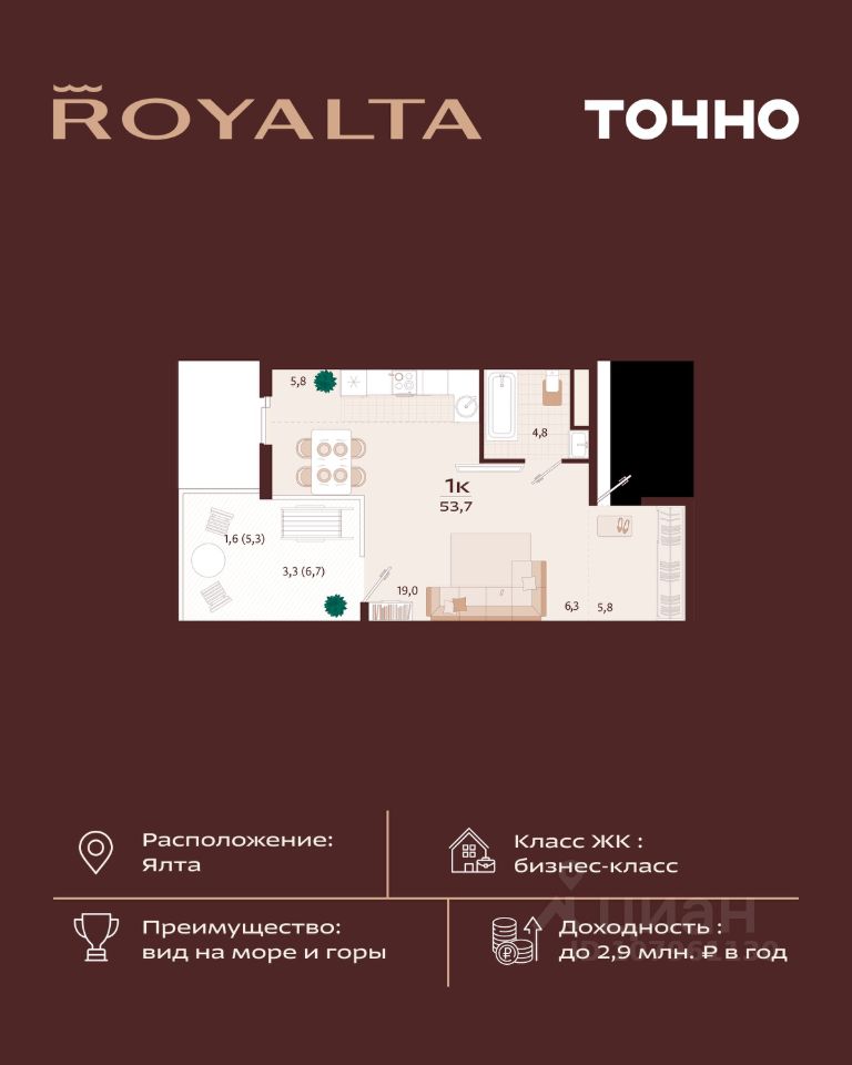 продам 1-к, имени Спендиарова, 527 508 000 ₽