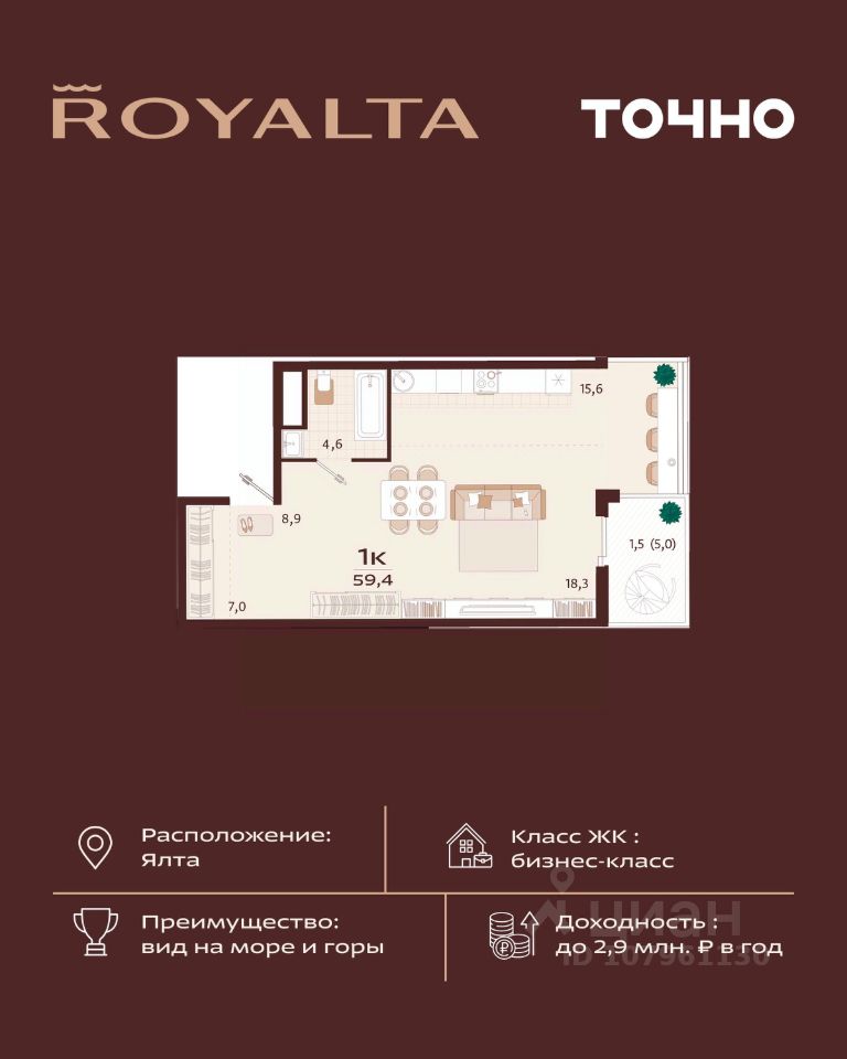 продам 1-к, имени Спендиарова, 529 700 000 ₽