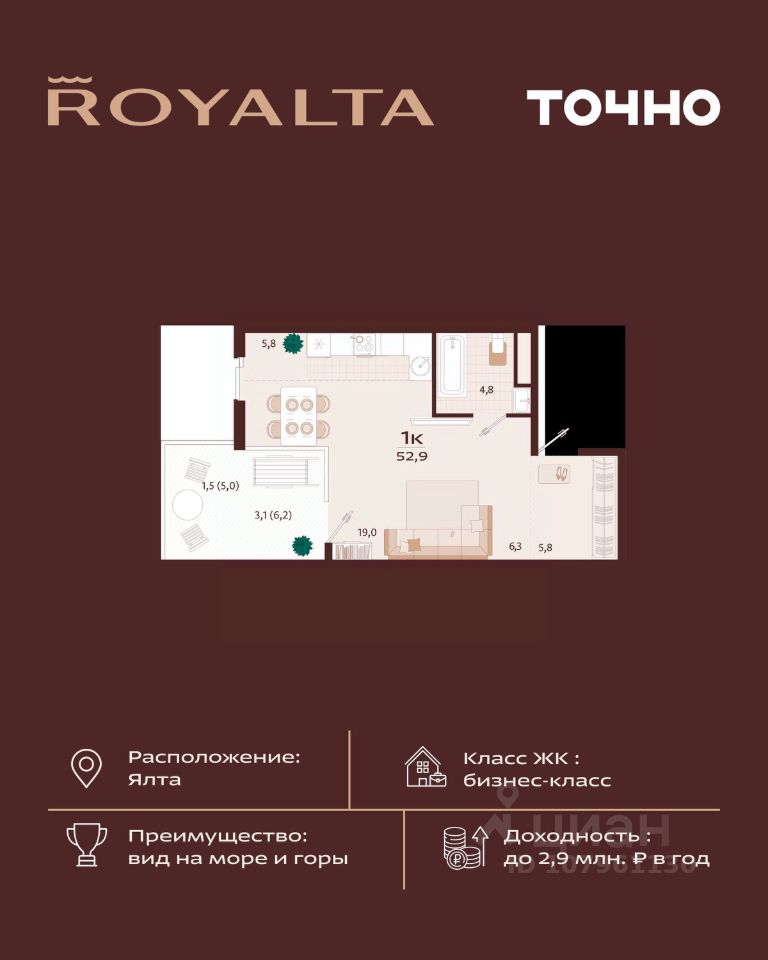 продам 1-к, имени Спендиарова, 523 810 000 ₽