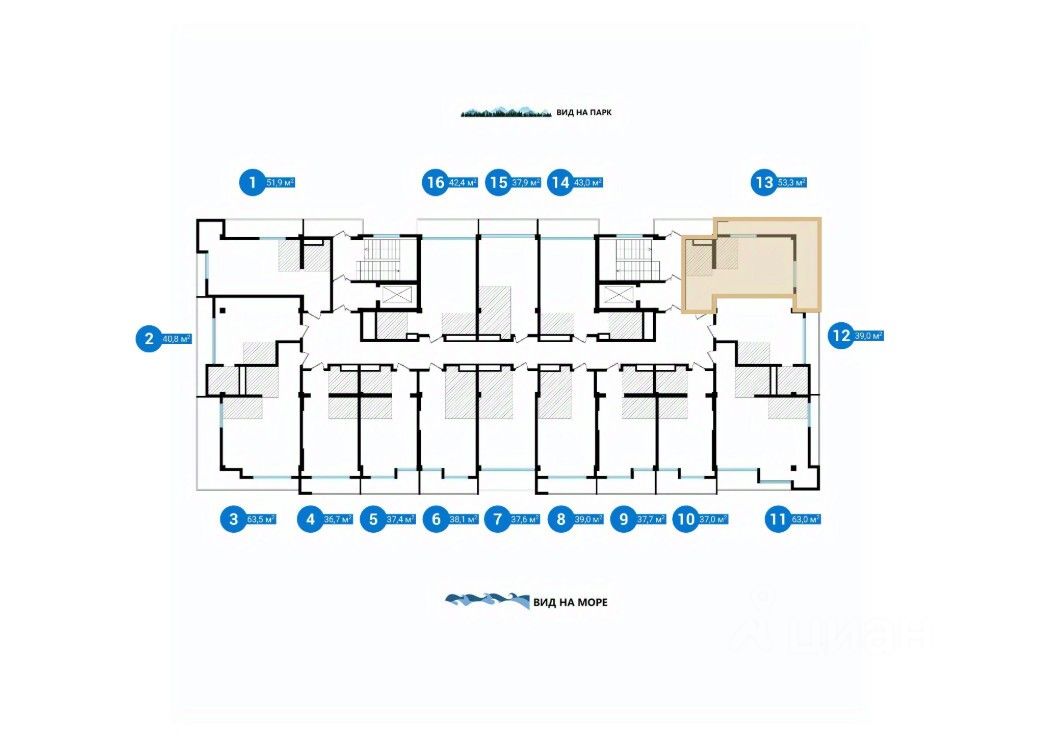 Все апартаменты имеют балконы, преобладающая часть ориентирована в сторону моря Вокруг здания и на крыше блока есть места для отдыха с скамейками, клумбами и садовой мебелью.