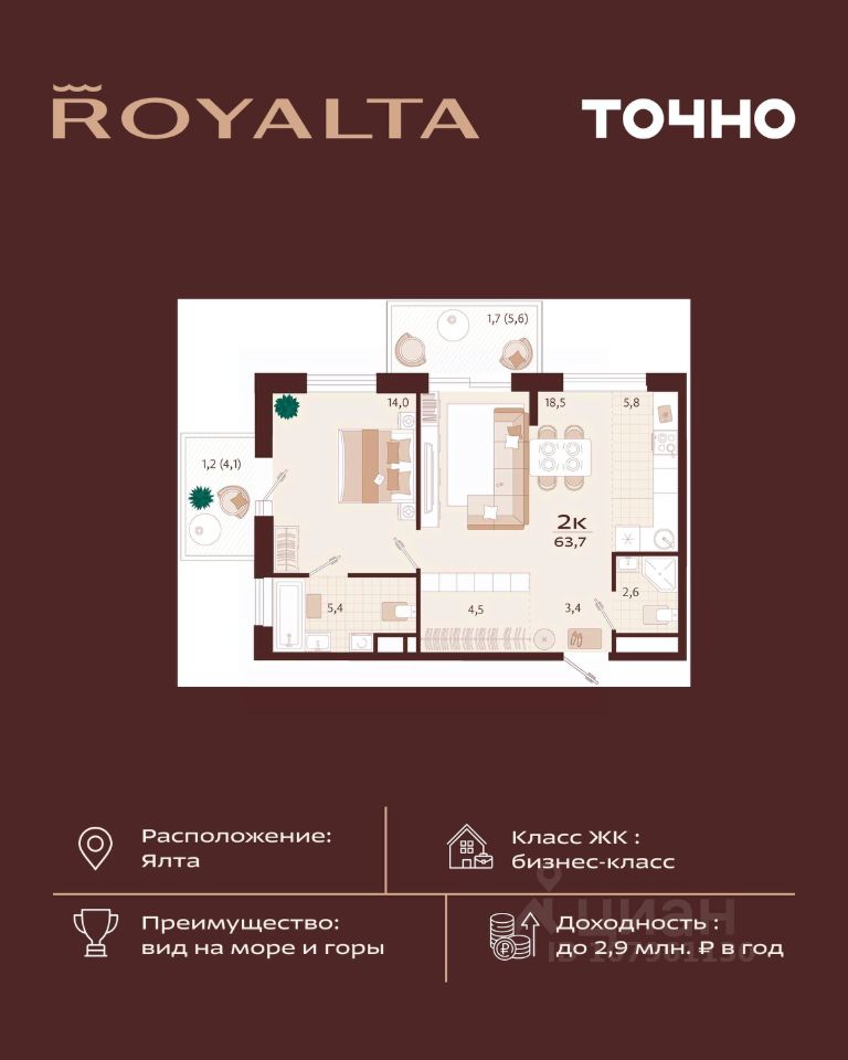 Жилой комплекс ''РОЯЛТА'' включает 5 монолитно-кирпичных девятиэтажных зданий. Проект предлагает квартиры различных планировок: от однокомнатных до трехкомнатных с расширенными балконами и террасами до 13,4 м2. Территория будет благоустроена детскими игровыми и спортивными площадками, гостевой автостоянкой и озеленением, включая газоны, деревья и кустарники. Также появятся современные уличные тренажёры, СПА-комплекс и панорамный инфинити-бассейн. В шаговой доступности находятся центральная набережная Ялты, детские сады, школы, супермаркеты, торговые центры, Ялтинский медицинский колледж, автовокзал и Мордвиновский парк.