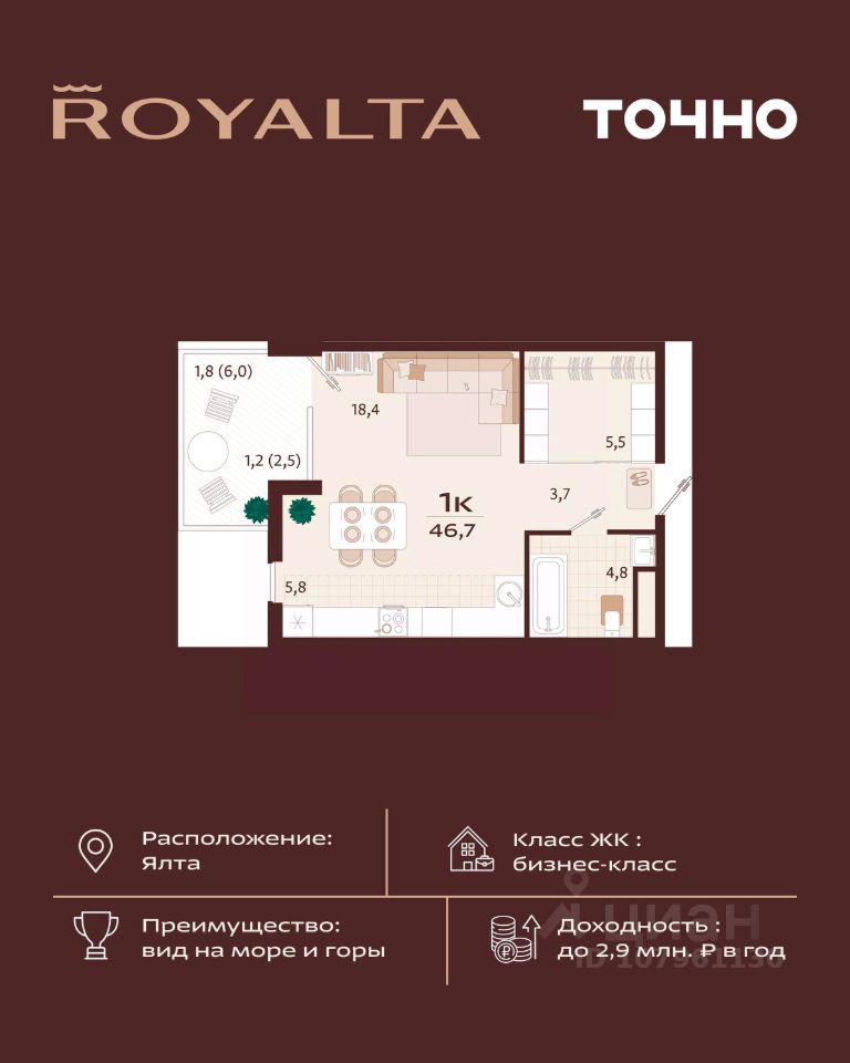 продам 1-к, имени Спендиарова, 523 350 000 ₽