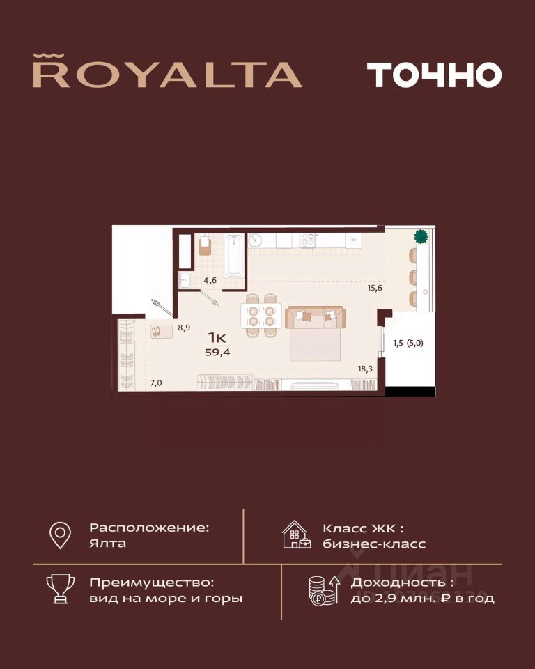 Жилой комплекс ''РОЯЛТА'' включает 5 монолитно-кирпичных девятиэтажных зданий. Проект предлагает квартиры различных планировок: от однокомнатных до трехкомнатных с расширенными балконами и террасами до 13,4 м2. Территория будет благоустроена детскими игровыми и спортивными площадками, гостевой автостоянкой и озеленением, включая газоны, деревья и кустарники. Также появятся современные уличные тренажёры, СПА-комплекс и панорамный инфинити-бассейн. В шаговой доступности находятся центральная набережная Ялты, детские сады, школы, супермаркеты, торговые центры, Ялтинский медицинский колледж, автовокзал и Мордвиновский парк.
