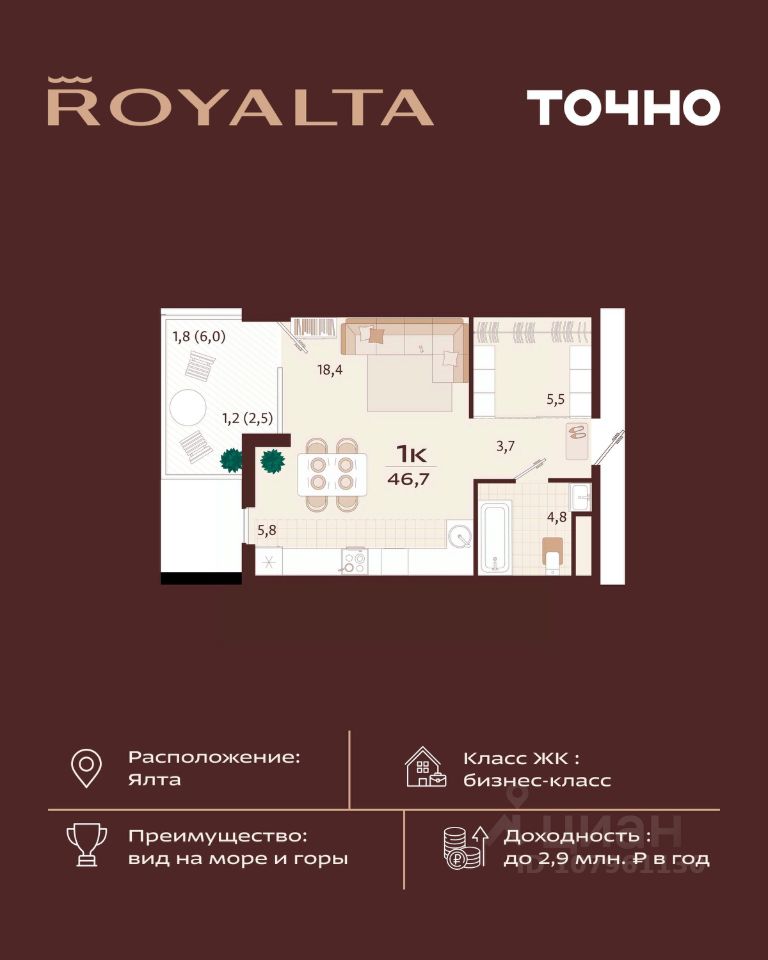 продам 1-к, имени Спендиарова, 522 930 000 ₽