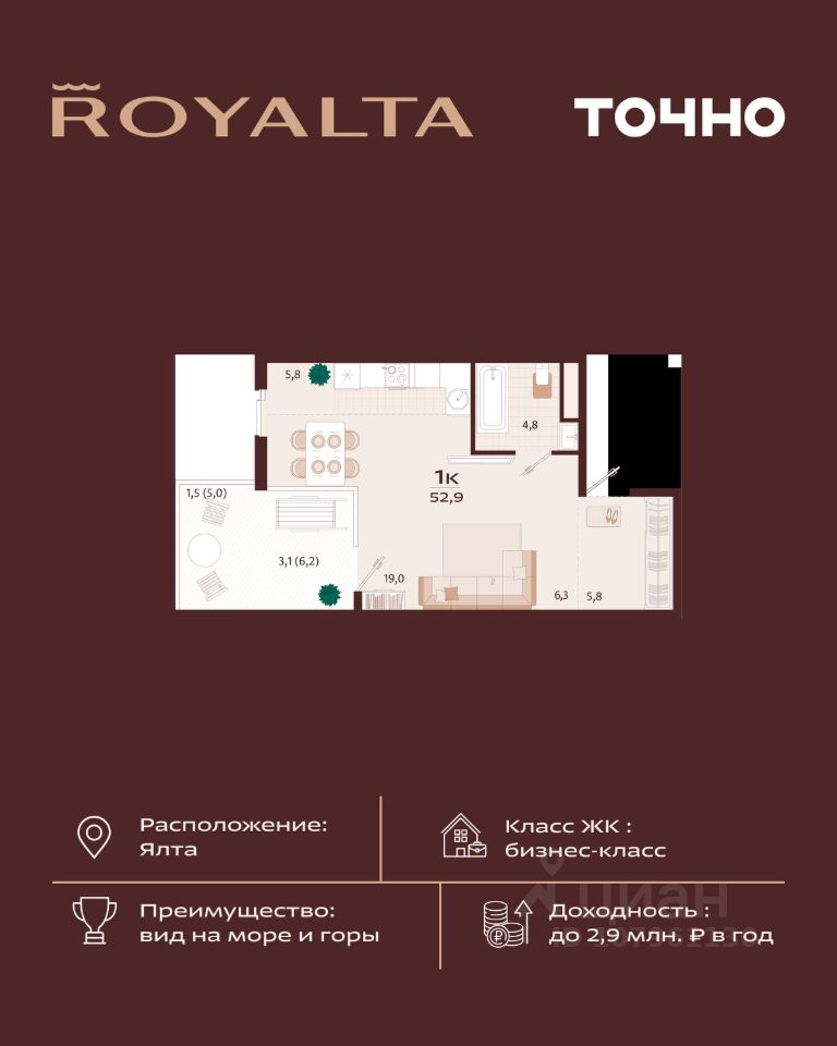 продам 1-к, имени Спендиарова, 524 531 000 ₽