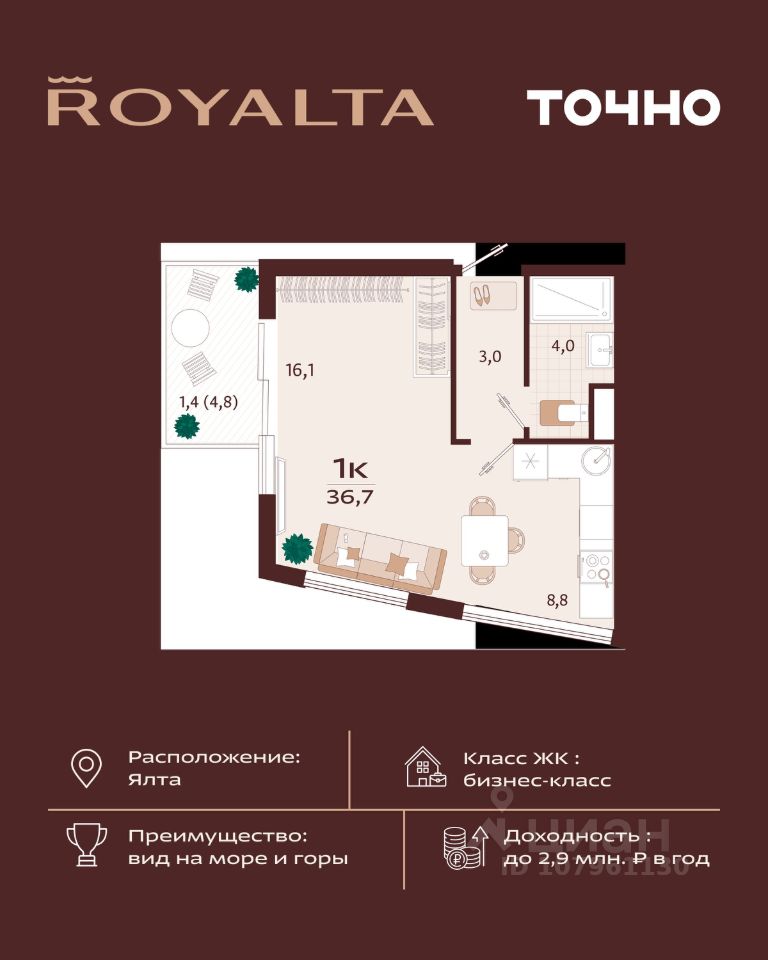 продам 1-к, имени Спендиарова, 527 998 000 ₽