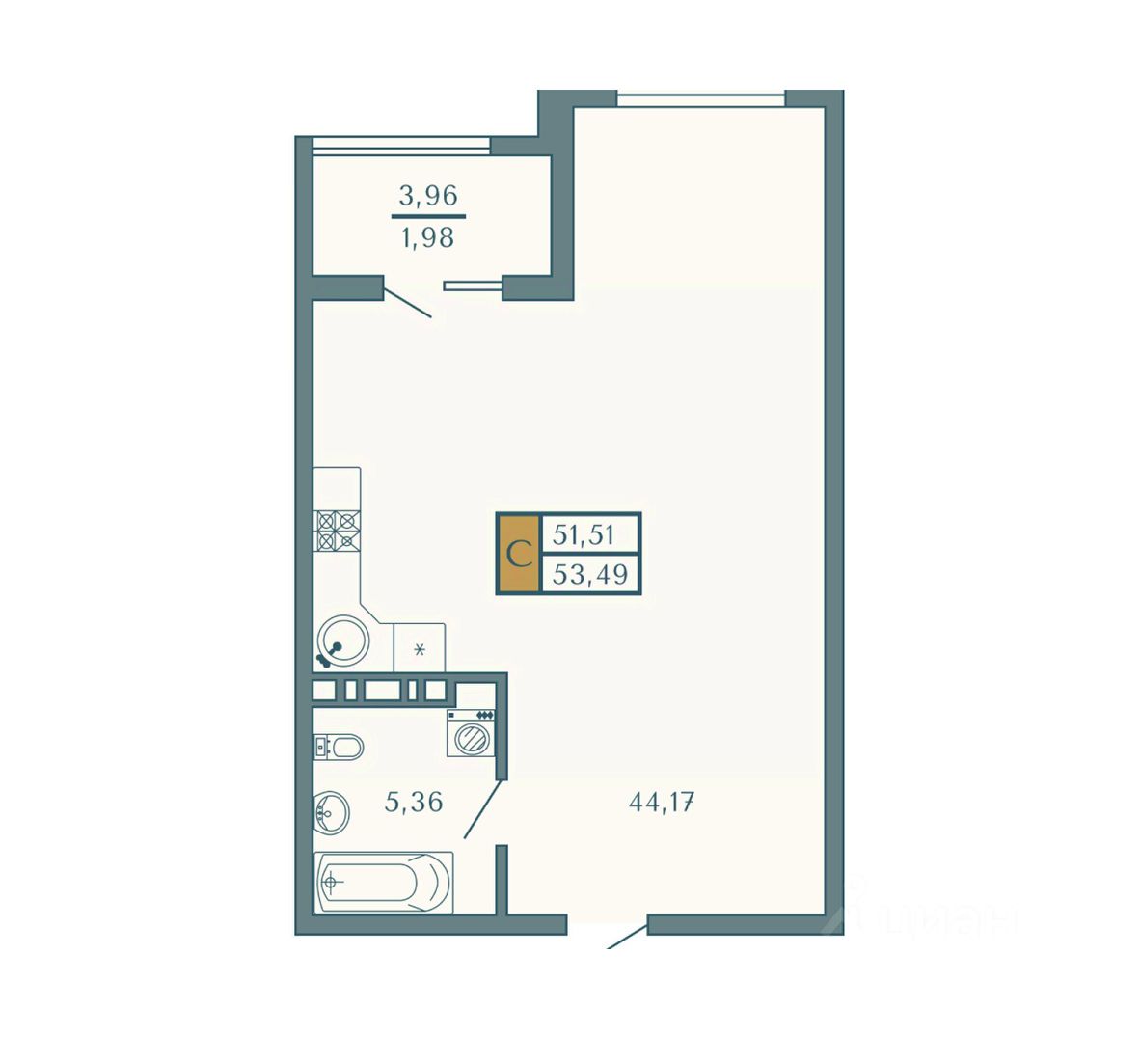 Общая площадь53,49 м2