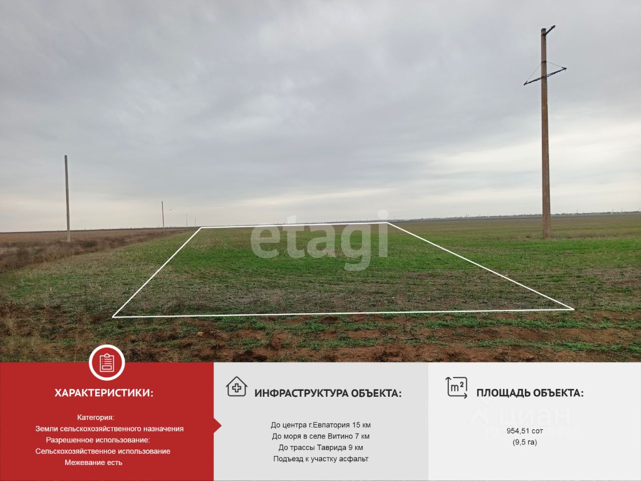 Участок общей площадью 954,51 соток ( 95 451 кв. м ) Категория земель:Земли сельскохозяйственного назначения. Вид разрешенного использования: сельскохозяйственное использование