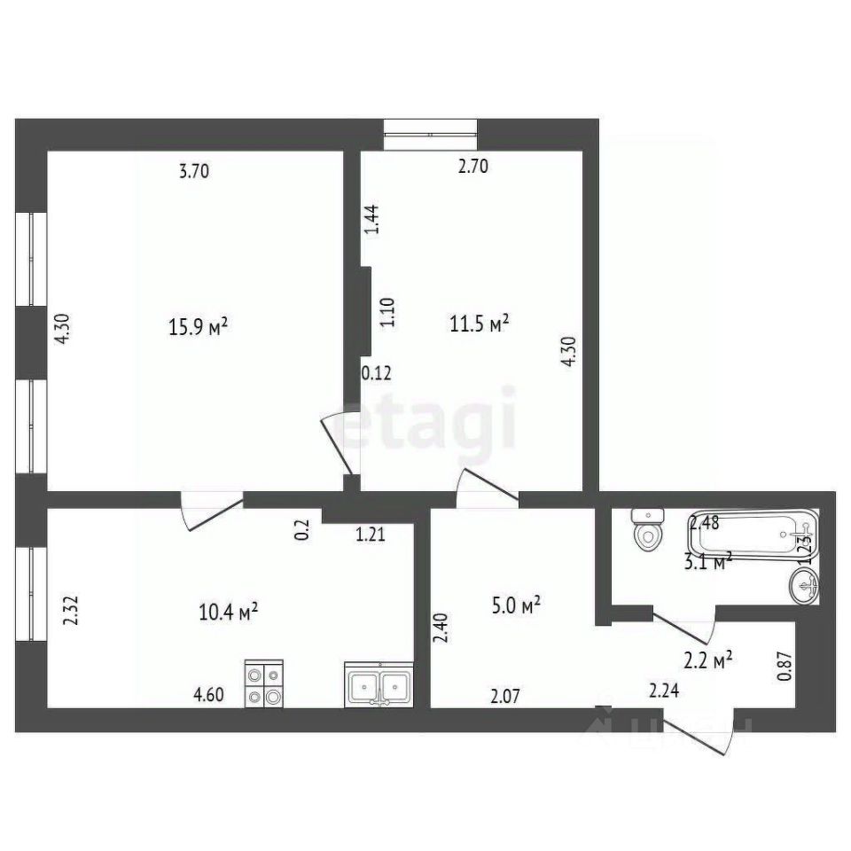 Площадь 59,1 кв. м. В квартире: три комнаты жилые комнаты, кухня, санузел, прихожая. Квартира в процессе ремонта, что позволяет сделать ремонт по своему желанию и воплотить свои дизайнерские идеи. Квартира просторная, тёплая: стены дома толстые. Тип комнат: проходные. Санузел совмещенный. Коммуникации: отопление — электрокотел, электричество подключено, водоснабжение центральное, канализация — выгребная яма. Расположение квартиры угловое — окна на две стороны. Общий двор. К квартире прилагаются (не оформлены): подвал, сарай, огород. Удобное месторасположение, в шаговой доступности вся инфраструктура — магазины, аптеки, больница, садик, школа. Документы РФ.