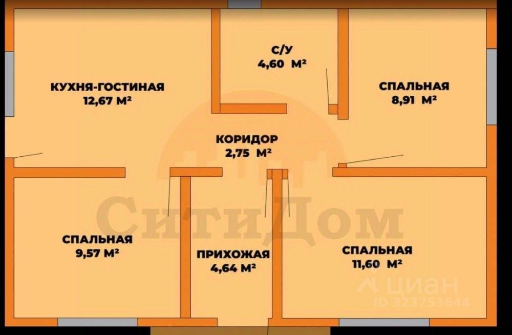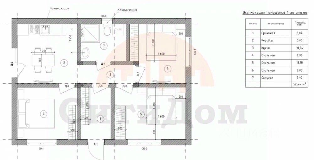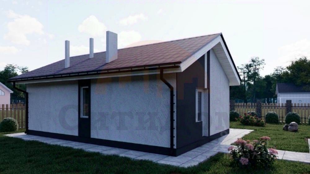 Общая площадь 52 кв.м, три спальни, кухня столовая 10 кв.м. Бетонный фундамент, стены ракушка, кровля металлочерепица, металлопластиковые окна, металлическая утеплённая входная дверь. Потолок 3 метра.