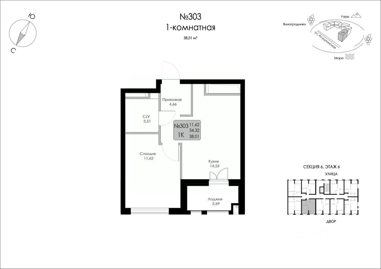 Продаётся 1-комнатная квартира в строящемся доме (Строение 1), срок сдачи: I-кв. 2027, общей площадью 38.01 кв.м., на 6 этаже.