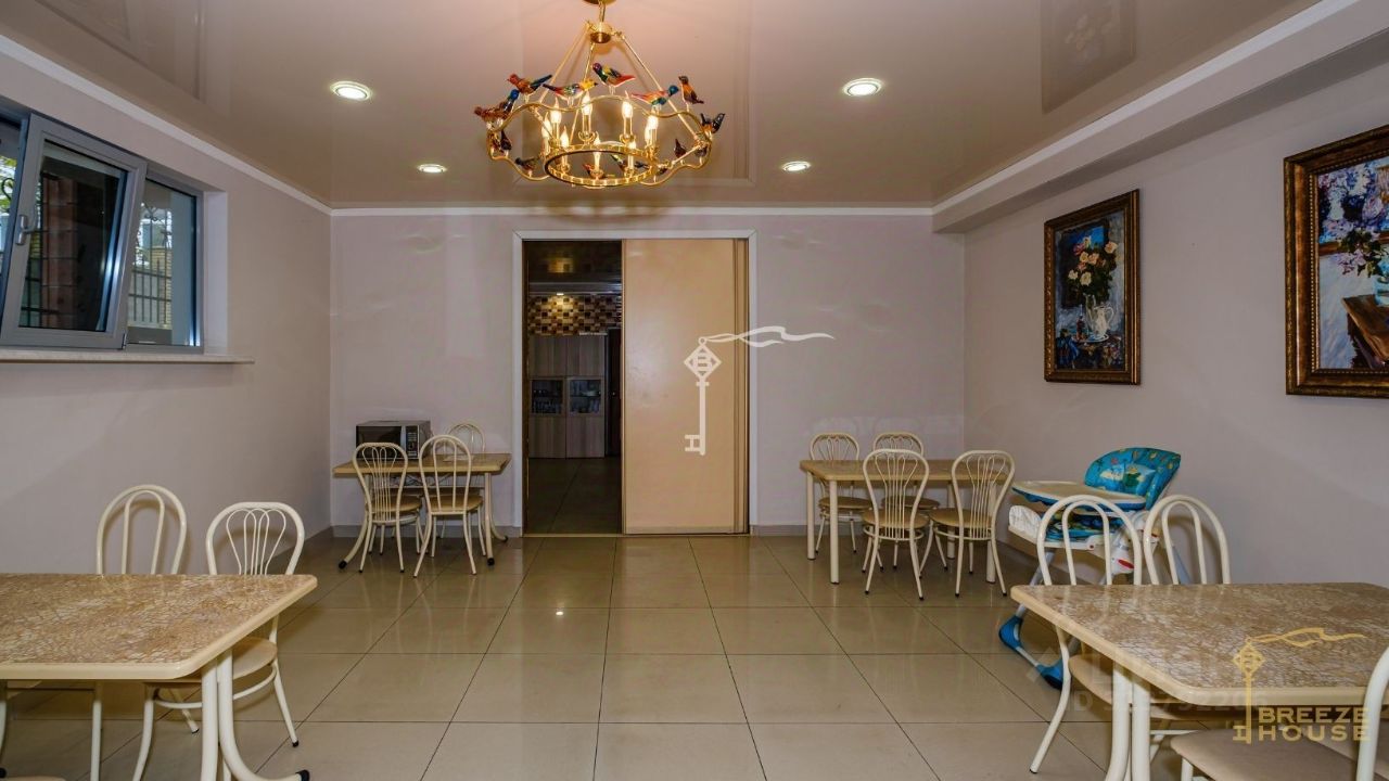 -3-этажное основное здание 600 м², -кафе-столовая на цокольном этаже, -гостевой дом с сауной, -беседка с зоной BBQ и тандыром, -парковка на шесть автомобилей.
