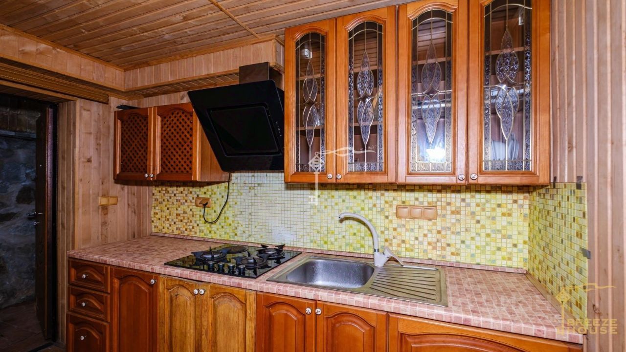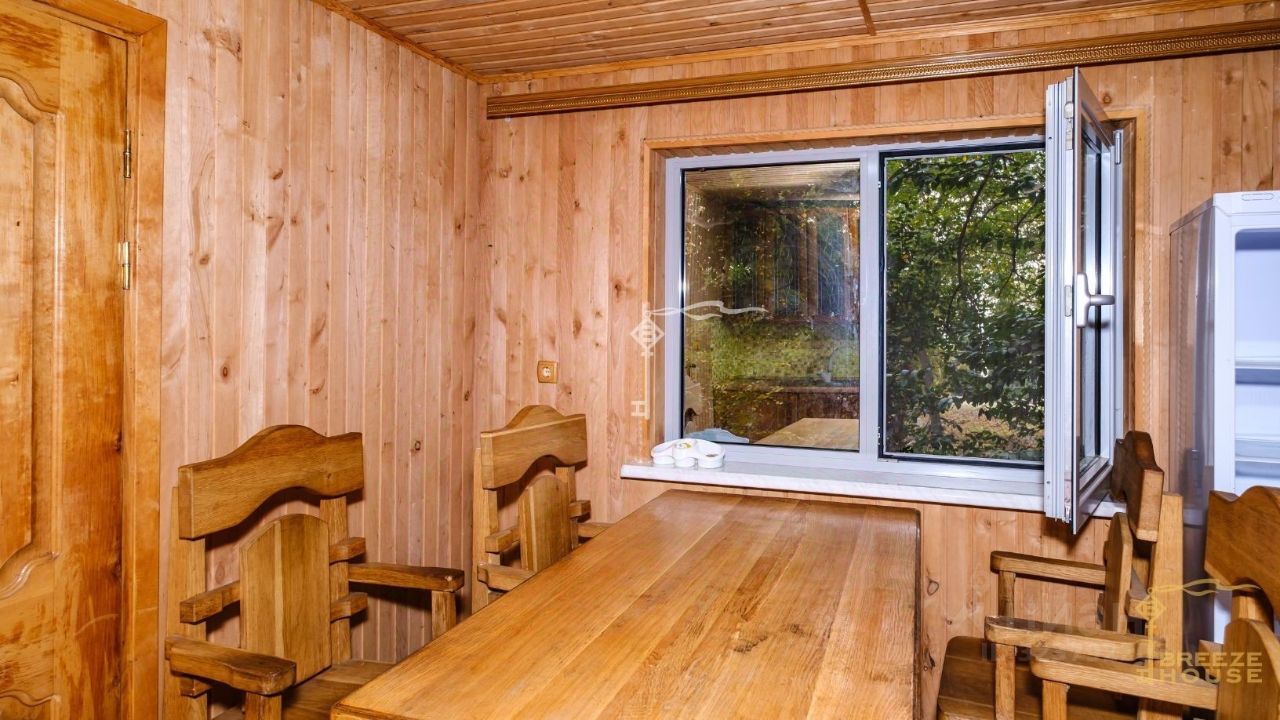 На цокольном этаже расположена кухня , оборудованная всей необходимой встроенной техникой, и просторная уютная обеденная зона. Здесь с комфортом могут разместиться все ваши гости.